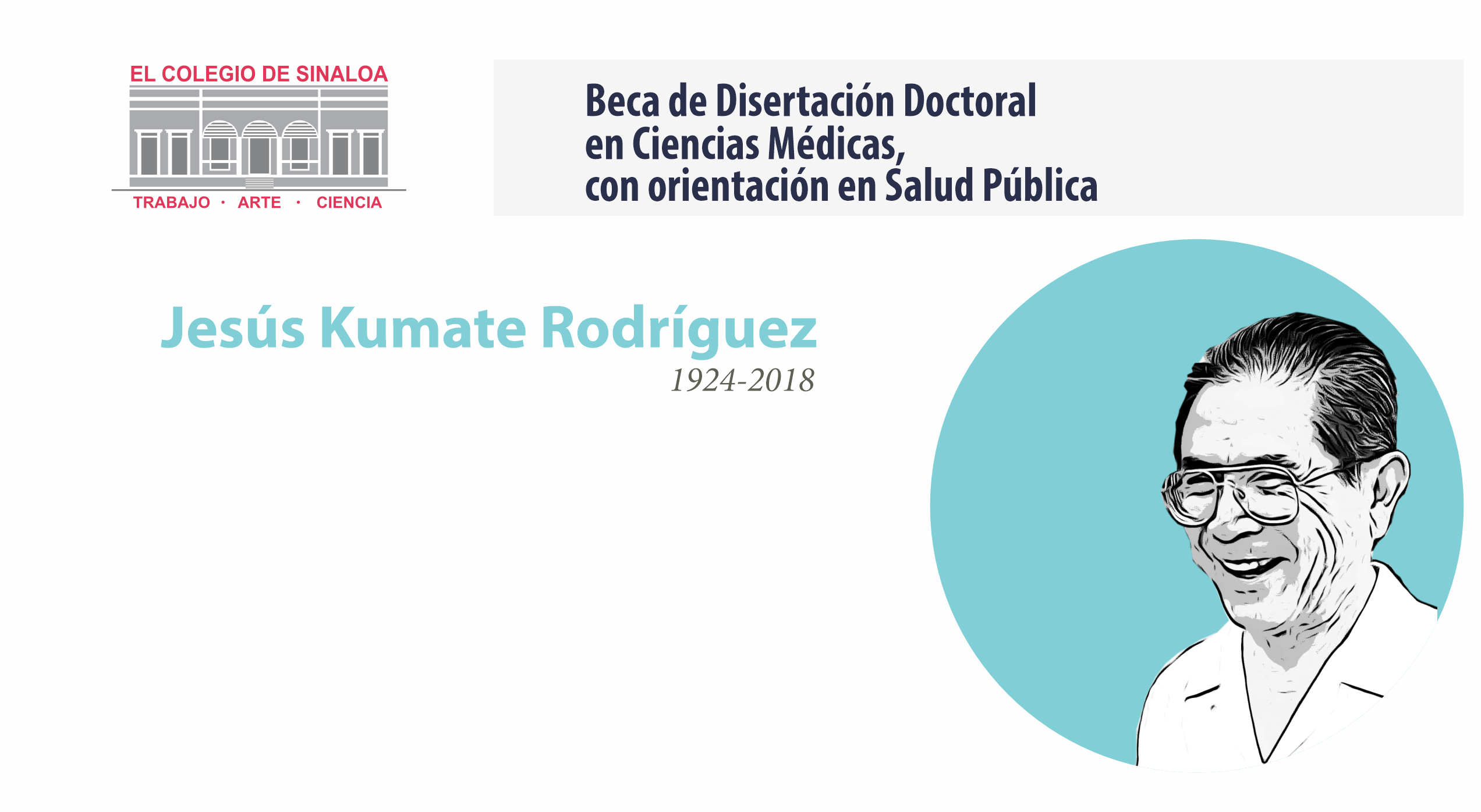 Con base en lo anterior, El Colegio de Sinaloa ha creado la beca de disertación doctoral en honor a uno de sus ilustres fundadores, el Dr. Jesús Kumate Rodríguez, para promover una nueva generación de profesores e investigadores provenientes de las distintas áreas de la Medicina con orientación hacia la Salud Pública, coadyuvando así a la culminación de su tesis. Además, la Beca Jesús Kumate Rodríguez pretende apoyar a aquellos individuos cuyas investigaciones muestren un potencial fresco, original y constructivo en el campo de la Salud Pública.
