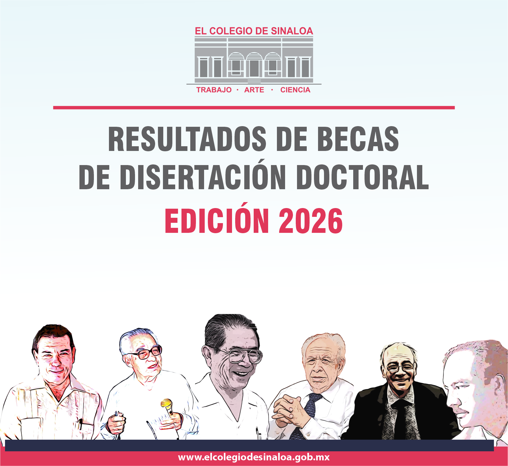 El Colegio de Sinaloa se complace en anunciar a los ganadores de las Becas de Disertación Doctoral, edición 2026. Como cada año la institución apoya a los candidatos a obtener grado de doctor, por lo que en esta ocasión se convocaron las siguientes becas: en Ciencias Biomédicas y de la Salud “Hugo Aréchiga Urtuzuástegui”, “Jesús Kumate Rodríguez” y “Leopoldo Flores Romo”; en Ciencias Sociales y Humanidades “Raúl Cervantes Ahumada”; en Ciencias Económicas y Políticas “José Luis Ceceña Gámez”; y en Historia y Estudios Regionales “Sergio Ortega Noriega”.