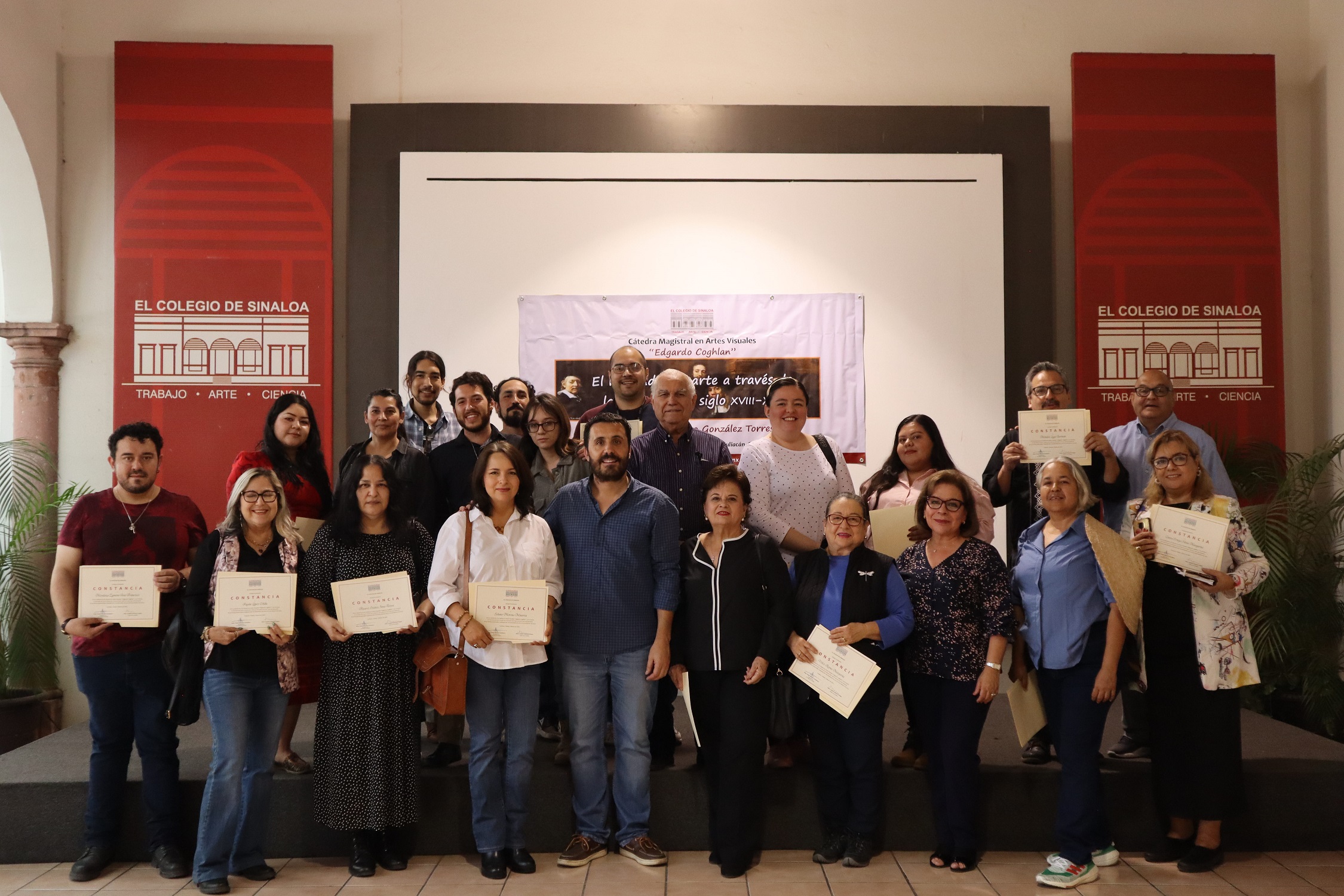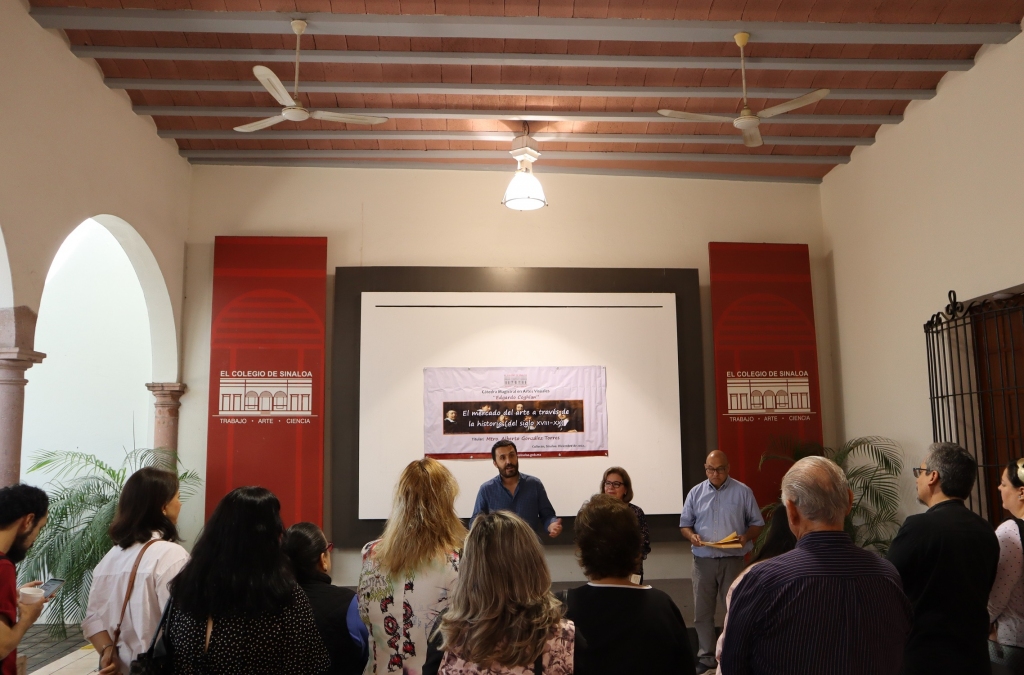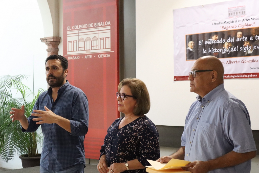 Sobre la evolución del mercado del arte, el Mtro. Alberto González Torres concluyó la Cátedra «Edgardo Coghlan» en Artes Visuales con el tema: El mercado del arte a través de la historia (del siglo XVIII-XX), en el vestíbulo de El Colegio de Sinaloa, el sábado 25 de febrero del presente año.