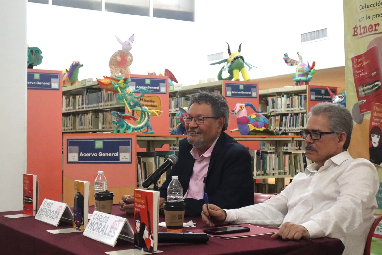El escritor sinaloense y miembro de El Colegio de Sinaloa, Élmer Mendoza, presentó en formato de bolsillo las novelas Balas de Plata, La prueba del ácido y Nombre de perro, que reeditó recientemente la editorial Penguin Random House. La actividad se realizó en la Biblioteca Pública Morelos, el jueves 25 de septiembre del presente año, como parte de la agenda que El Colegio de Sinaloa lleva a cabo en la zona norte del estado, y que fue coordinada con el H. Ayuntamiento de Ahome y la corresponsalía Los Mochis del Seminario de Cultura Mexicana.