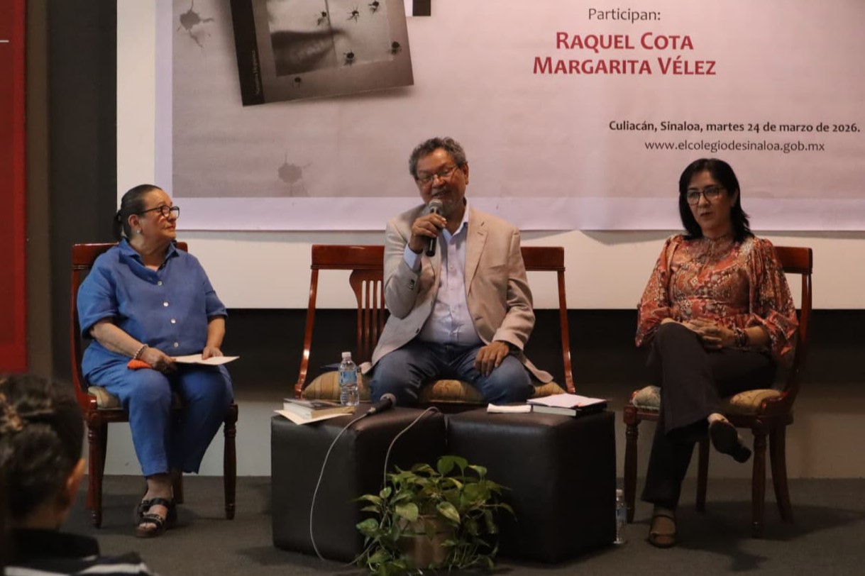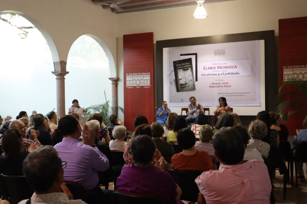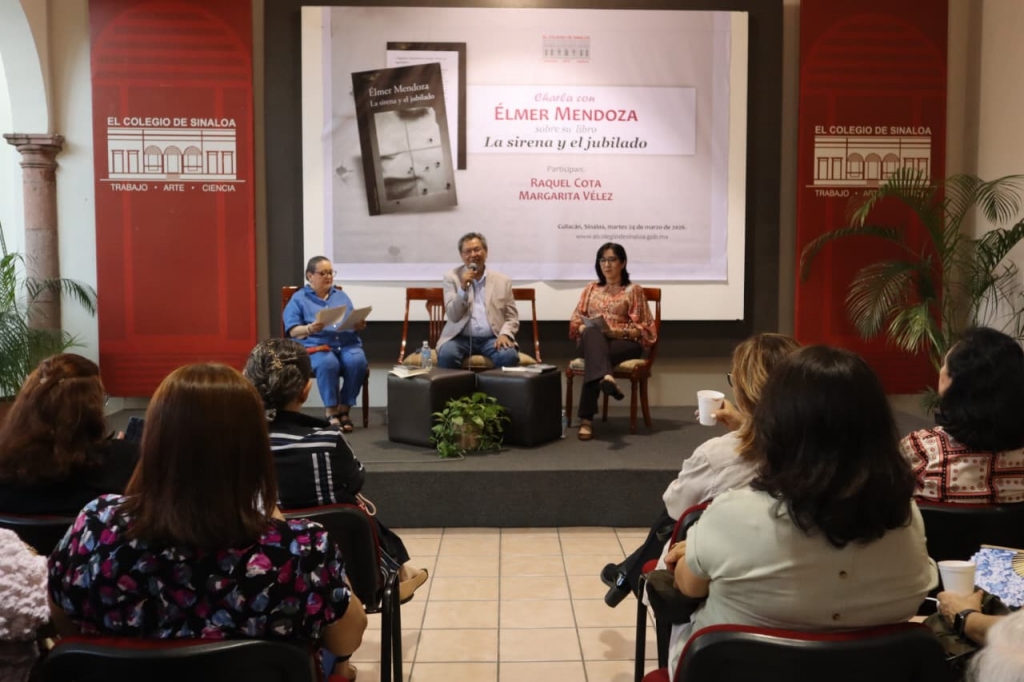 A manera de charla, el escritor y miembro de El Colegio de Sinaloa, estuvo acompañado por Raquel Cota, promotora cultural y escritora; quien fue finalista de la 1ª edición del “Premio Primera Novela” en 2021 con el libro Al pie de la lluvia de oro. Y por Margarita Vélez, gestora cultural, integrante de la Sociedad de Amigos del MASIN. Ambas colaboraron en el libro Leemos libros. Aquí, allá y en todas partes, publicado por El Colegio y coordinado por el propio Élmer Mendoza, sobre experiencias y prácticas de lectura.