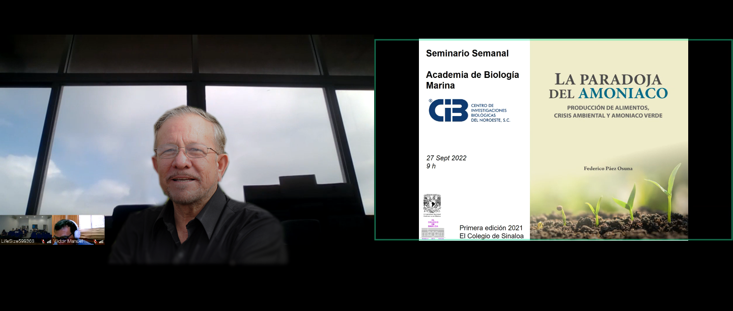 Como invitado de la Academia de Biología Marina del Centro de Investigaciones Biológicas del Noroeste, S. C., el Dr. Federico Páez Osuna —miembro de El Colegio de Sinaloa— presentó su libro más reciente La paradoja del amoniaco, el martes 27 de septiembre del presente año, de forma virtual y ante estudiantes de posgrado. El investigador expresó que la motivación para escribir este libro surgió del conflicto de la construcción de la planta de amoniaco en esta entidad, en razón de que el tema del amoniaco es de atención mundial, así como de distintas organizaciones ambientales y científicas.