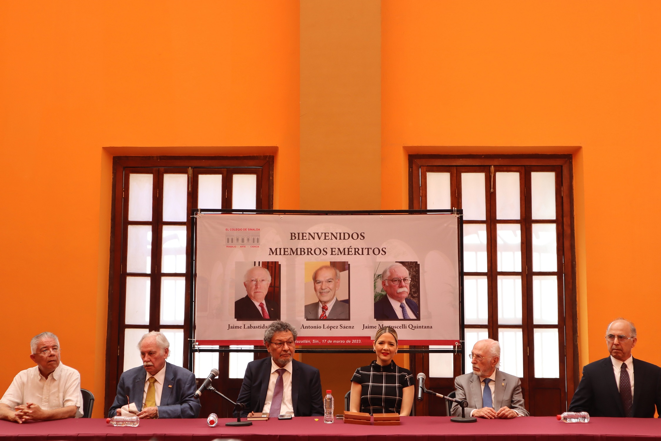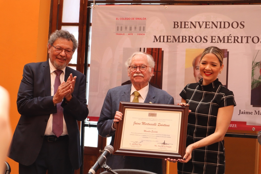 Con base en sus estatutos, El Colegio de Sinaloa distinguió a los integrantes del Consejo Directivo, Dr. Jaime Labastida, Mtro. Antonio López Sáenz y Dr. Jaime Martuscelli Quintana, como Miembros Eméritos de esta institución, en una ceremonia realizada el viernes 17 de marzo del año en curso, en la Casa Haas del puerto de Mazatlán.