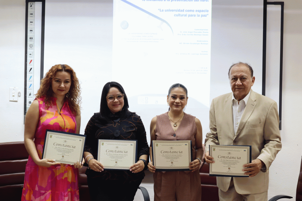 El Mtro. José Ángel Pescador Osuna, miembro de El Colegio de Sinaloa, participó con sus comentarios en la presentación de libro: La universidad como espacio cultural para la paz, en presencia de su autora Dra. América M. Lizárraga González, el pasado martes 23 de abril del año en curso, en el auditorio de la Facultad de Estudios Internacionales y Políticas Públicas de la UAS.