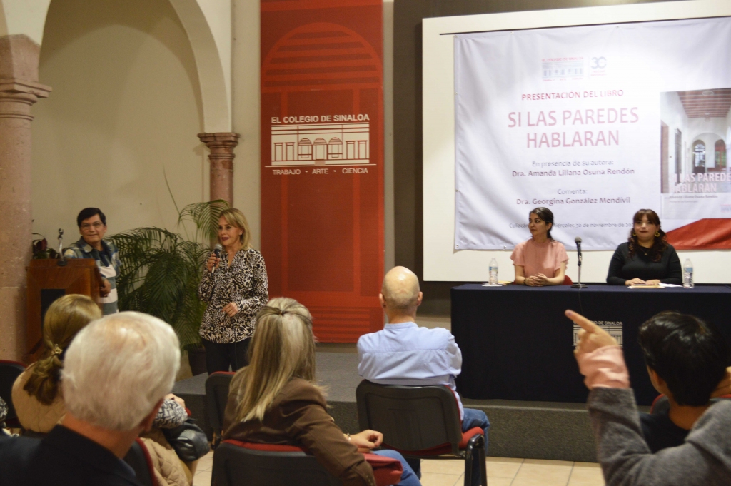 La historiadora Georgina González Mendívil, en sus comentarios, indicó que el libro Si las paredes hablaran examina el edificio sede de El Colegio de Sinaloa ubicado en un espacio central de la historia de la ciudad de Culiacán. Agregó que la obra se divide en tres ejes temáticos: el primero habla sobre las apariciones del predio en los registros públicos y su desarrollo paralelo al de la ciudad; el segundo, la casa como un centro neurálgico de relaciones personales y profesionales de la familia Gutiérrez; y el tercero aborda la vida cotidiana que se desarrollaba en la casa.