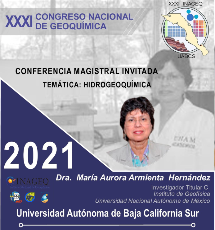 Con el tema Relevancia de la hidrogeoquímica en la solución de la contaminación del agua subterránea por arsénico, la Dra. María Aurora Armienta Hernández —miembro de El Colegio de Sinaloa— participó de forma virtual en elXXXI Congreso Nacional de Geoquímica-INAGEQ 2021, celebrado del 11 al 15 de octubre del año en curso. Esta actividad fue convocada por el Instituto Nacional de Geoquímica A.C. (INAGEQ), en colaboración con la Universidad Autónoma de Baja California Sur (UABCS).