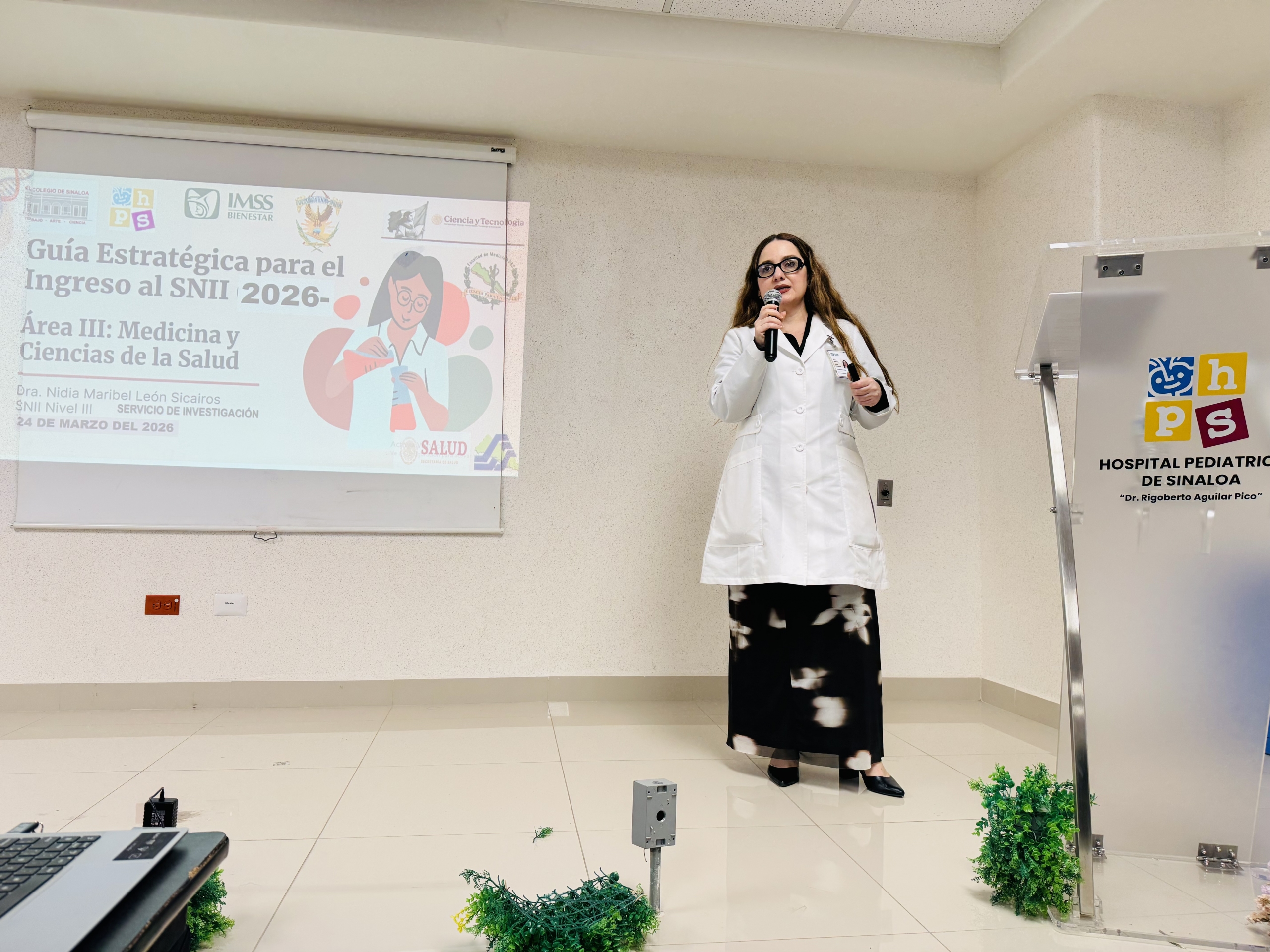 Invitada por el Hospital Pediátrico de Sinaloa a su sesión general, la Dra. Nidia Maribel León Sicairos —miembro de El Colegio de Sinaloa— disertó la conferencia titulada ‘Guía estrategia para el ingreso al Sistema Nacional de Investigadoras e Investigadores enfocada en el área 3: Medicina y Ciencias de la Salud’, realizada el pasado martes 24 de marzo del presente año en sus inmediaciones, la cual fue dirigida a médicos especialistas, residentes, médicos internos y personal de salud de la institución, con el objetivo de crear un espacio de aprendizaje y fortalecimiento académico dirigido al personal del área.